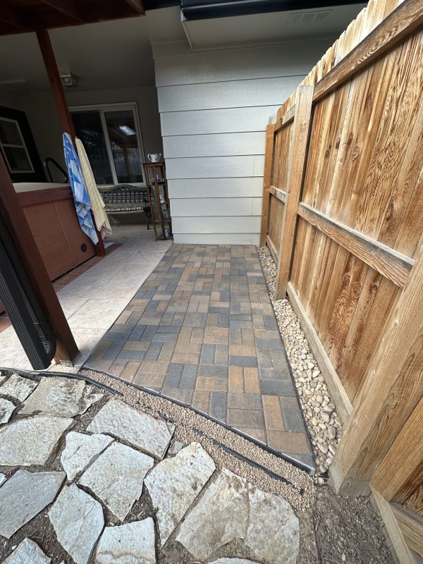 Turned a rotted wooden deck into a beautiful paver patio with curve edge